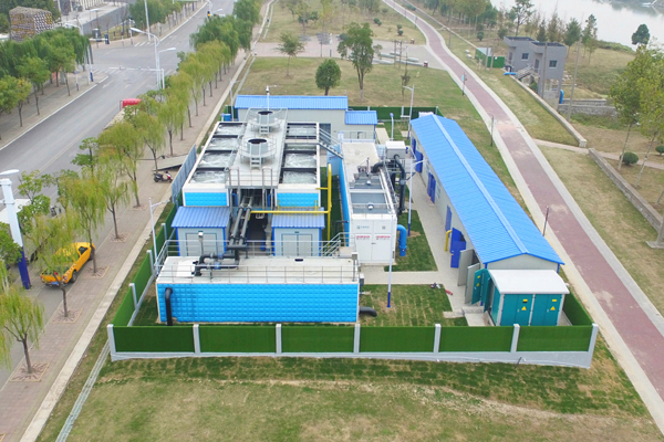 合肥市南淝河流域應急污水處理服務樅陽路泵站工程占地約1053.5m2,設計處理能力5000m3/d,采用我司研發的Rapid-Move黑臭水體旁路處理系統——“魔方磁(磁混凝系統)+魔方尊(BAF系統)”組合工藝產品。進水從幸福路下方自流箱涵末端取水,當水量不足時,從樅陽排澇泵站進水前池泵提取水或濱河路污水管網泵提取水,出水通過管道接入樅陽排澇泵站出水箱涵。